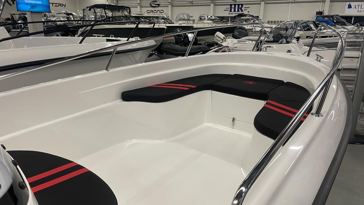 Standardutrustning: Badstege, Brandsläckare, Digitalt motor instrument, Dynsats akter + ryggdyna, Eluttag 12V, Ellänspump, Förpulpit, Hydraulstyrning, Lanternor LED, Låsögla klass 3, Rutbåge i rostfritt, Securmark märkning båt, Securmark märkning motor Yamaha, Självläns, Startspärr Y-Cop Yamaha, Styrpulpetöverdrag, Syrafast plåt i akterspegeln, Vindskärm.
